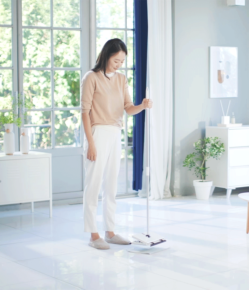 손터치NO! 발로 가볍게 청소포 교체! 전방향 회전 가능으로 구석구석 청소가능!