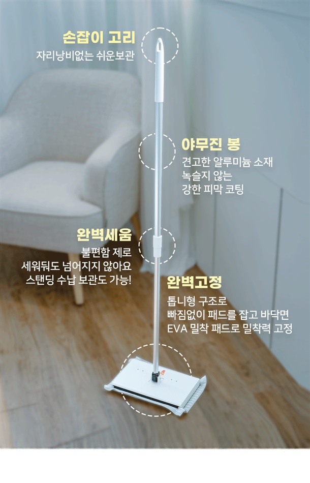 헤드 25x15x2.5 / 핸들 68~117 / 청소포 29.5x23 (오차범위1~2cm)