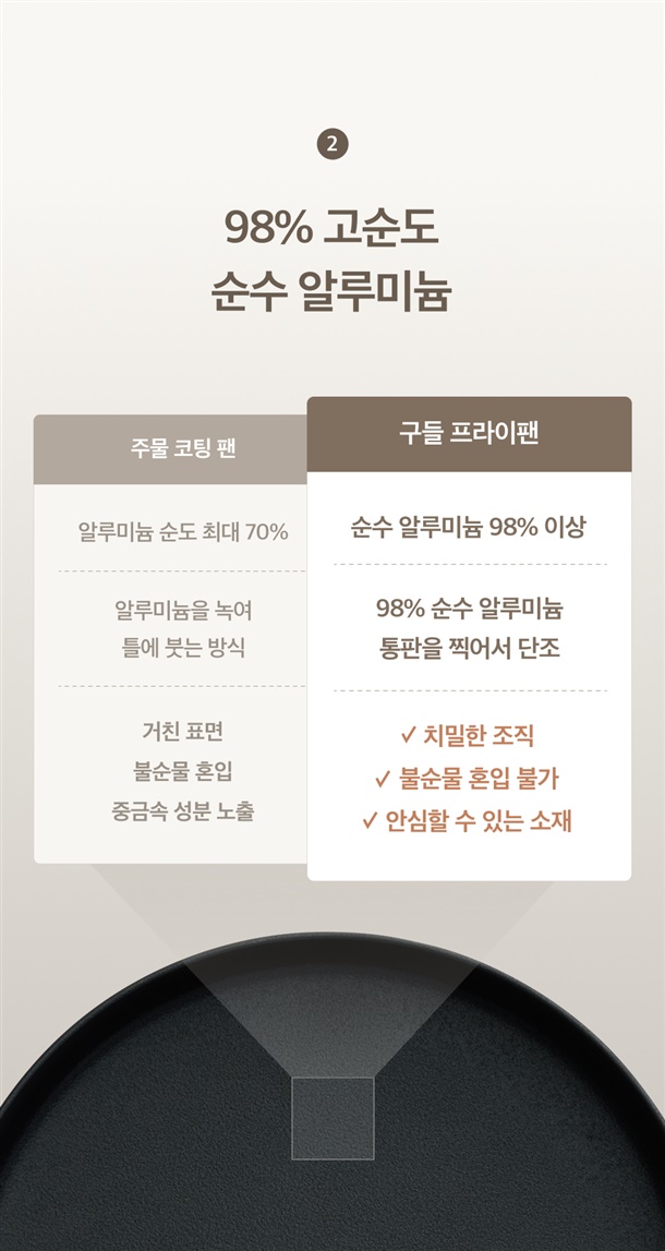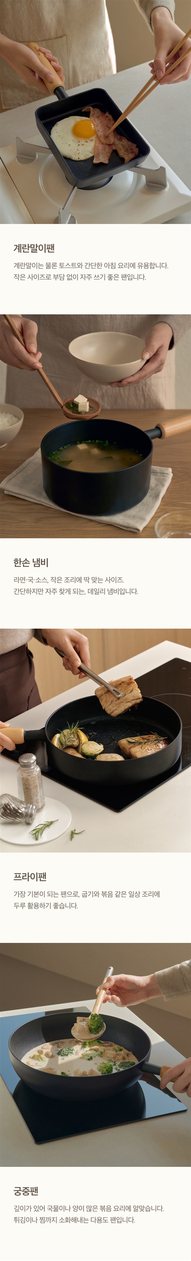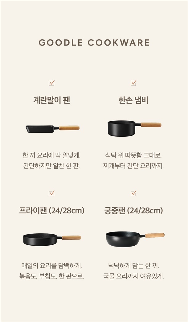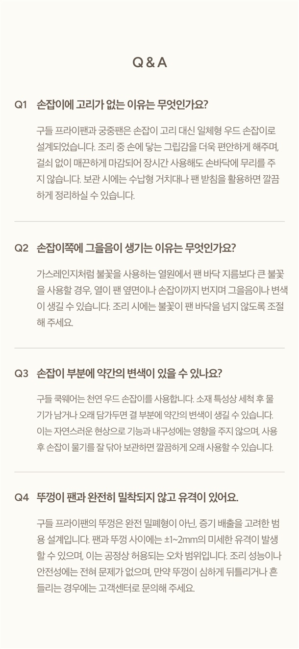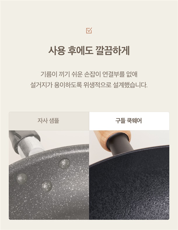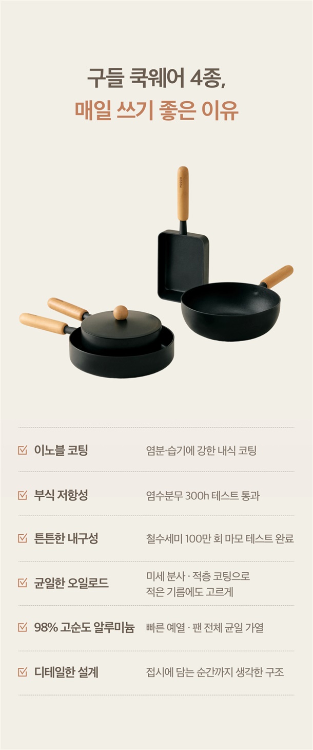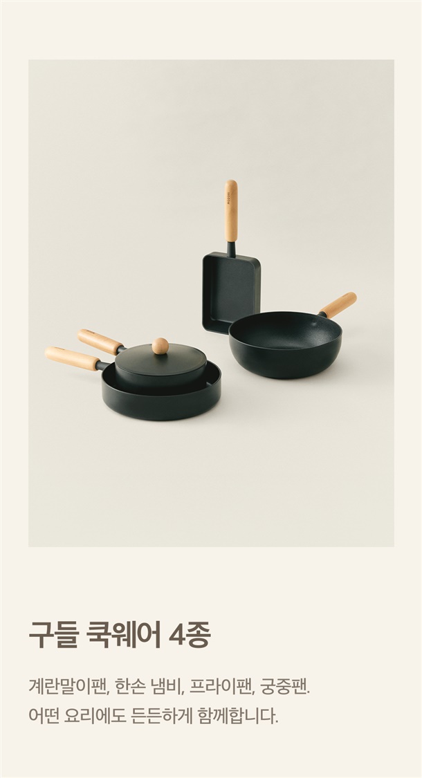구들 쿡웨어는 천연 우드 손잡이를 사용합니다.