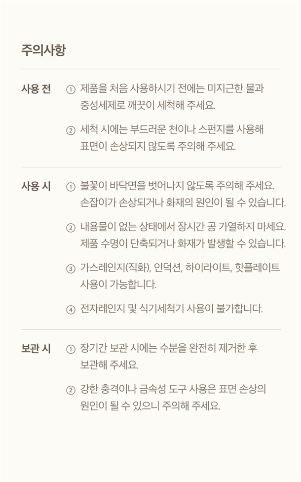 - 한손냄비: 647g / 한손냄비 뚜껑: 160g