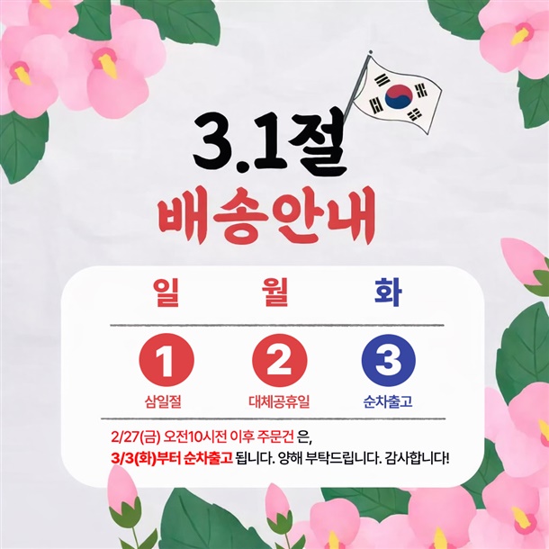 · 배송일 : 평일기준 1~3일 이내 출고